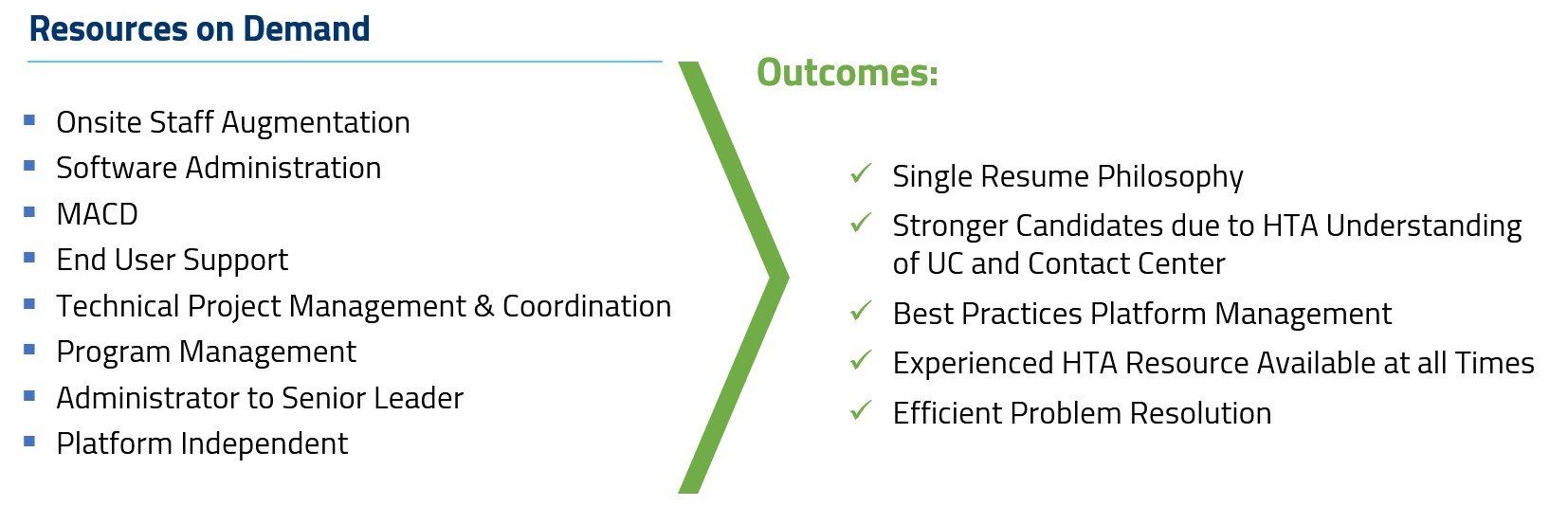 It no longer makes sense for businesses to staff for the peaks or to become experts in all facets of communications technology. HTA’s Resources on Demand provides Knowledge as a Service (KaaS)